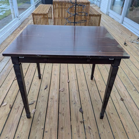 Et virkeligt smukt spisebord med fine løvefødder. En lille liste skal enten limes på eller have et lille søm.