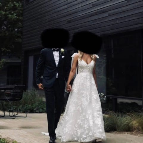 Jeg går meget ind for genbrug, men valgte at købe denne fantastisk smukke brudekjole fra ny. Så i stedet for at lægge den på loftet, synes jeg den skal få et liv mere! Jeg håber en anden kan blive lige så glad for den, som jeg her været.