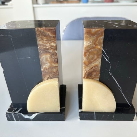 Smuk bogstøtte eller objekt i marmor. Den er 19,5 cm høj. Den kan hentes på møn eller på nørrebro på mandage.