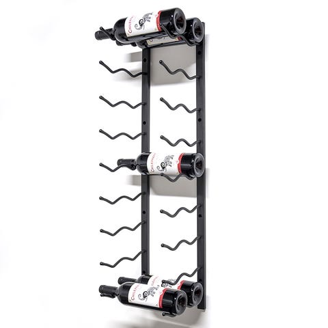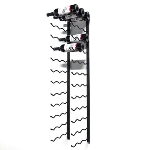 Vægmonteret vinstativ i sort metal med plads til 24 vinflasker. Designet til opbevaring af vinflasker i horisontal position, hvilket hjælper med at bevare kvaliteten af vinen. Passer til standard vinflasker og kan monteres på væg for pladsbesparende opbevaring.
