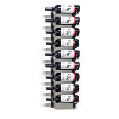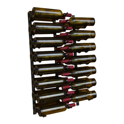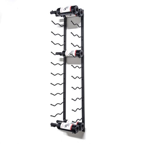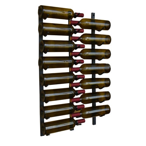 Vægmonteret vinstativ i sort metal med plads til 45 magnum/champagner. Designet til opbevaring af vinflasker i horisontal position, hvilket hjælper med at bevare kvaliteten af vinen. Passer til standard vinflasker og kan monteres på væg for pladsbesparende opbevaring.