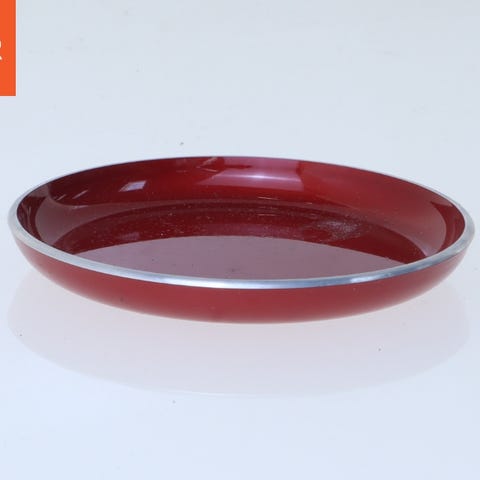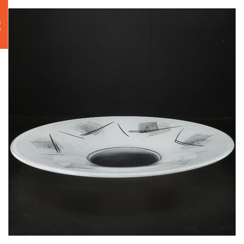 rundt flot fad i laksefarvet porcelæn med mat finish. Det er 28 cm i dia. Det kan hentes på Møn eller nørrebro om mandage eller efter aftale.