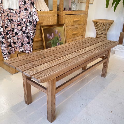 Gammel vaskehus bænk/tremmebænk/Plantebænk/Vaskebænk i patineret fyrretræ med galvaniseret stål stel.