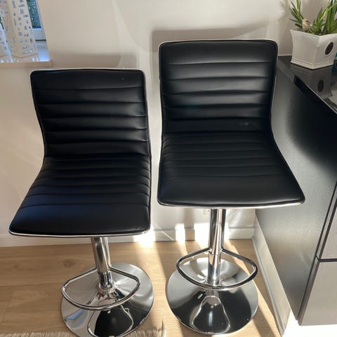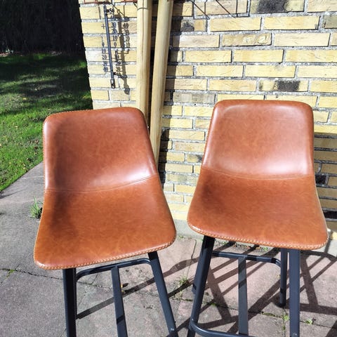 Jess barstol med kraftig polstret sæde og ryg i oksefarvet læder og stel i sort metal. Stolen har et enkelt og moderne design, velegnet til brug ved et højbord (96cm). Prisen er for begge stole, som har en nypris på ca. 10.000 kr. Stolene har udelukket stået i en køkkenudstilling og er ellers ikke brugt. Mulighed for at sende stolene med fragtmand mod betaling af fragt. Jeg kender ikke fragtprisen.