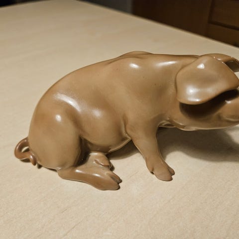 Denne figur er en siddende gris fra Bing & Grøndahl, figur nr. 1582.