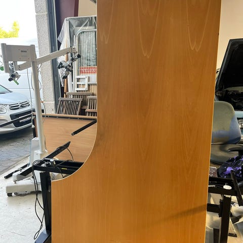 Bordplade samt bagbeklædning til hæve-sænke bord sælges - GIV ET BUD