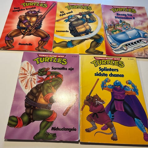 Jeg sælger 4 flotte Teenage Mutant Hero Turtles hæfter på dansk – klassiske historier med de seje ninja-skildpadder!