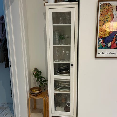Mangler de 3 hylder men er lige til at skære nogle nye. Flot med glas hylder i.