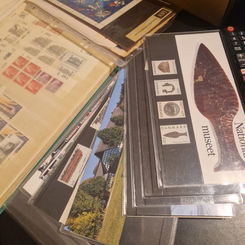 Samling af diverse frimærker i flere album. Indeholder frimærker i forskellige størrelser, farver og motiver fra forskellige perioder og lande. Egnet til samlere eller til brug i hobbyprojekter.