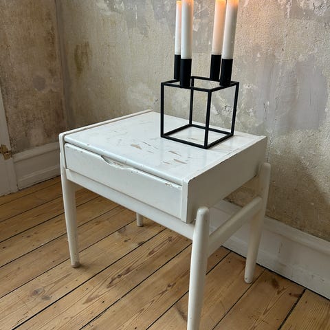 Gråmalet sidebord /sengebord i super fedt design lavet af snedker.