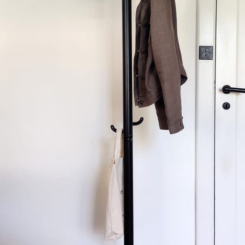 LASTEIN Design. Sir James Bøgen 2 en produktserie fra Lastein by Hoigaard. Den vægophængte stumtjener giver luft i entréen ved ikke at optage gulvplads – derfor passer den både ind i den store og den mindre entré. Selve korpus er produceret i holdbart metal. Stumtjeneren er aluminiumsfarvet og har knopper af aluminium, der er placeret for enden af de 8 knager. Knagerne sidder skiftevis sammen i par af en kort og en lang knage, hvilket udgør en diskret detalje i den enkle design. Mål: H: 79 x B: 15 c x D 17,5 cm. Brugt god stand med almindelige brugsspor /se foto nr. 9/. Fra ryge-og dyrefrit hjem. Gode P forhold ved afhentning på adressen. Sender ikke. KUN KONTANT VED AFHENTNING. Varen er stadig til salg, hvis annoncen er aktiv.