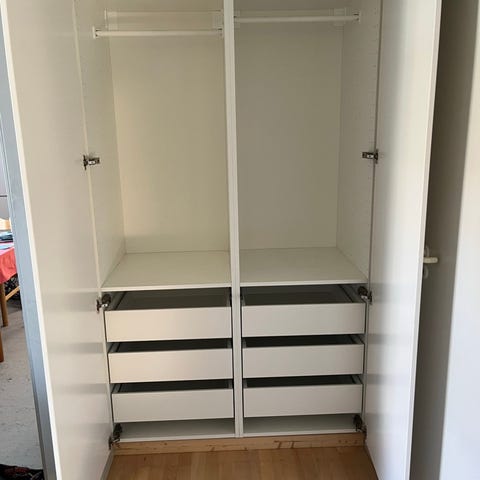 Metod vægskabe. Har 2 styks. Til venstre på billeder. Der følger låge med til det ene. Og skuffe samt hylder.