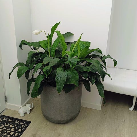 Stor fredslilje, cirka 100 cm diameter og 130cm høj. Stor selvvandingspotte medfølger