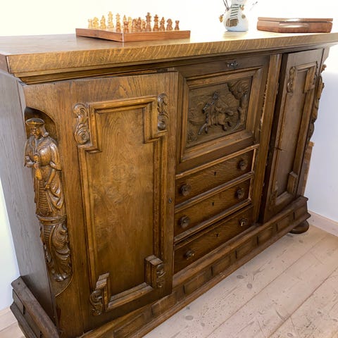 FLOT ANTIK SKÆNK I EGETRÆ MED UDSKÆRINGER