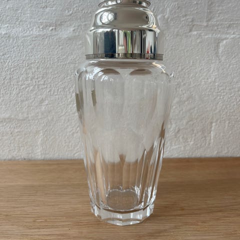 Vintage cocktail shaker i flot stand med fine facetslibninger i glasset.