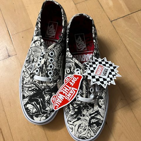 Vans Marvel sneakers i størrelse 39 med rød og sort farve. Skoene er designet med detaljer inspireret af Marvel og har en høj ankelkonstruktion. Materialet er primært syntetisk med tekstilindvendigt for.Det er en meget dyr sko fra ny og de er brugt to gange så der er ingen fejl skriv enlig