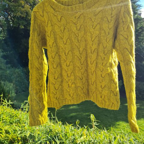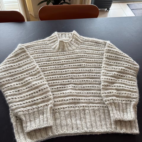 Håndstrikket sweater efter opskrift fra Lærke Bagger. Sweateren er strikket i Hjertegarn Natur Uld og restegarn af forskellige typer af uld.