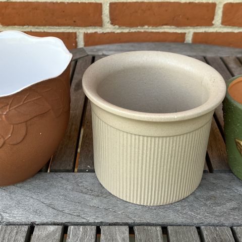 1 stk. stribet sort/råhvid urtepotteskjuler, Ø7 cm, H7 cm. I god stand ingen skår. Fra et røg- og dyrefrit hjem.