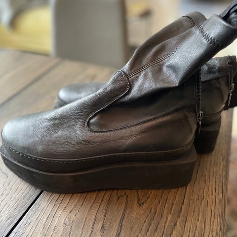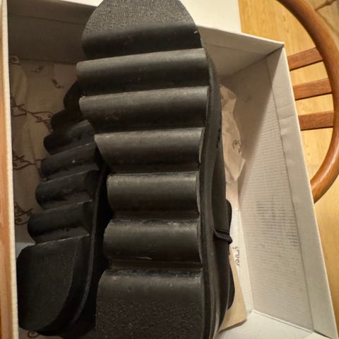 Ingen brugsspor bortset fra en rids på hæl som måske er som ny med et dup olie. Ikke noget man ligger mærke til.