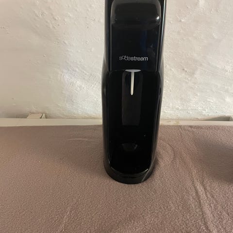Sodastream Soda Maker i grå farve. Designet til at lave danskvand hjemme. Fremstillet i holdbart materiale med en kompakt og pladsbesparende form. Velegnet til daglig brug i køkkenet.
