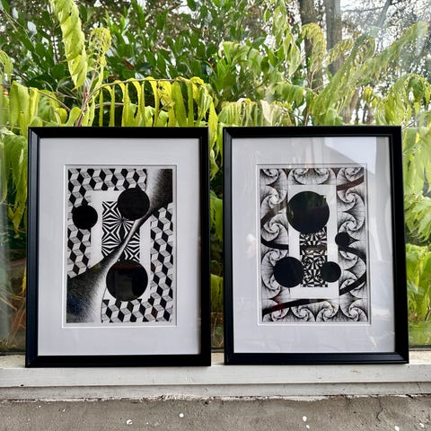 Håndlavet billedkunst i ramme sælges.