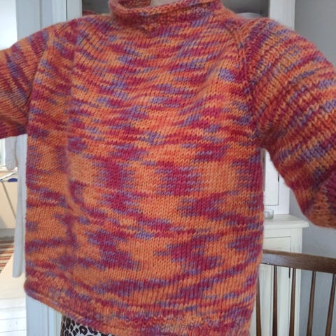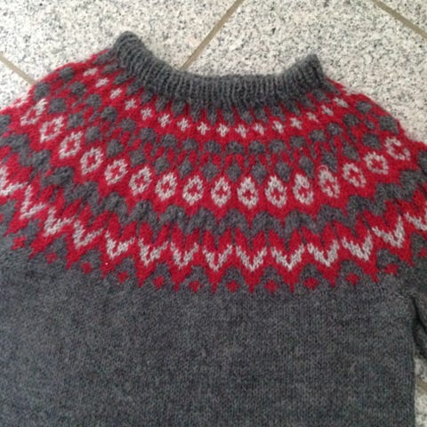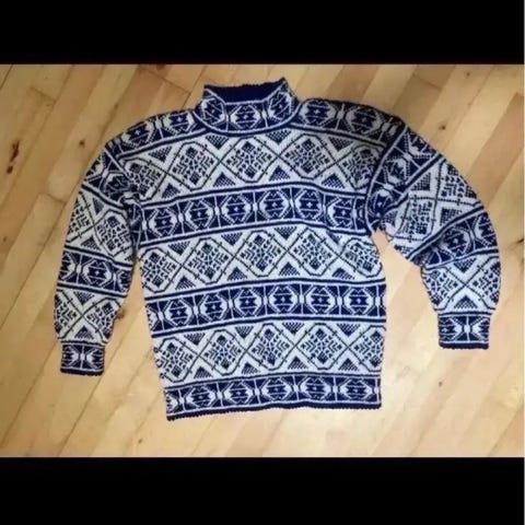 Super lækker hjemme strikket uldtrøje med et flot mønster.
