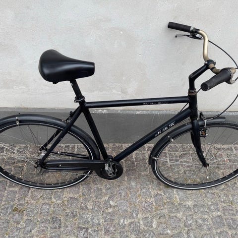 Gennem serviceret cykel i aluminium, som ikke ruster. Fine 28" hjul med fine dæk/slanger. Saddel kan hæves/sænkes. Monteret med lygter for og bag. Ny fast monteret ringlås med 2 nøgler. Nye bremseklodser for. OBS Der er nu monteret en ny "klik" kurv på cyklen. Stel nr.: WMB63575B. Passer til person på ca. 175 cm.