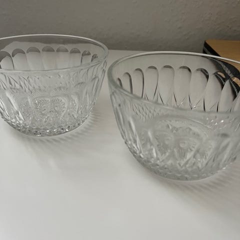 Lille glasskål: Ø 13 cm, H 7 cm.