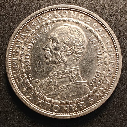 Dansk 2 Kroner Mønt 1913 Sølv