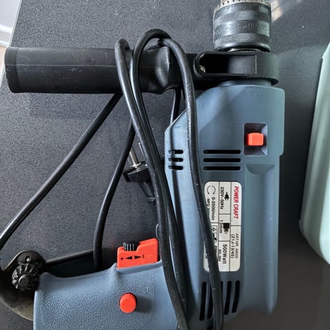 FALKE Slagboremaskine leveres i en robust sort kuffert. Maskinen er gul og sort med ledning, og kufferten indeholder forskellige bor og tilbehør til boreopgaver. Produktet er designet til alsidig brug i forskellige materialer.