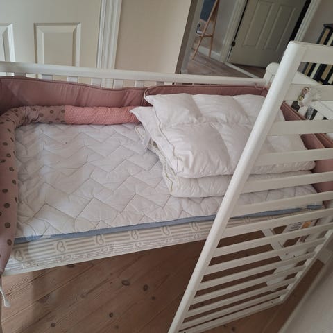Troll Tremmeseng i hvid. Inkluderer en madras med aftageligt betræk.