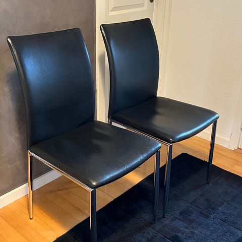 Læder spisebordsstole oprindeligt fra IKEA. Brugt men har mest bare stået ved bordet urørt som ekstra stole til gæster.