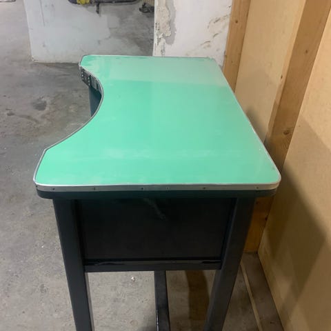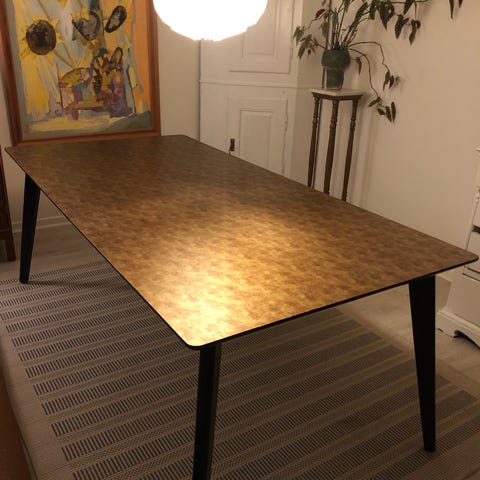 2 Pers guldsmedebord på 2 bukke m patina. Kan blive væghængt