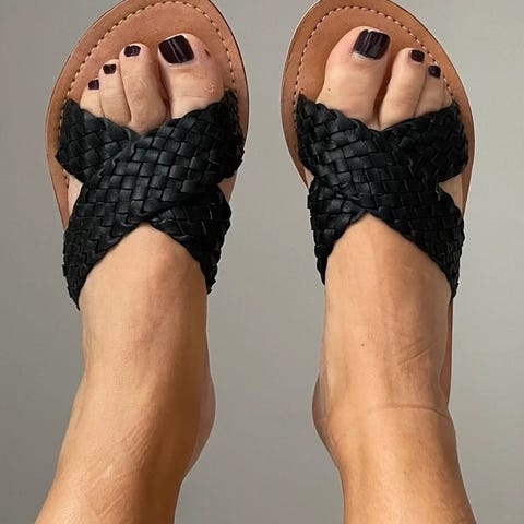 Et par brune lædersandaler med læderremme og non slip-sål. Skoene er håndlavet og købt på Bali. Passer en størrelse 37. Måler ca. 24 cm. Sælges da remmene er for store til min vrist.
