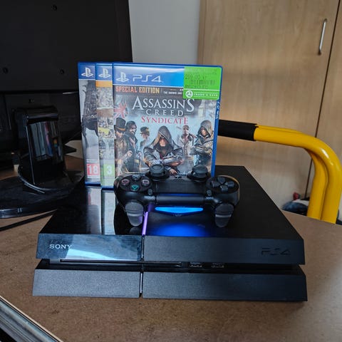 brugt playstation med en masse spil der hører alt og lidt mere til med undtagen controller. Sælger helst samlet