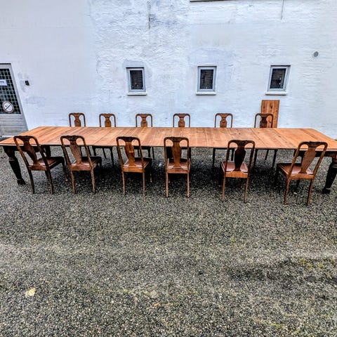 Vi sælger vores langbord samt 8 spisebordsstole - pris samlet 15000 kr.