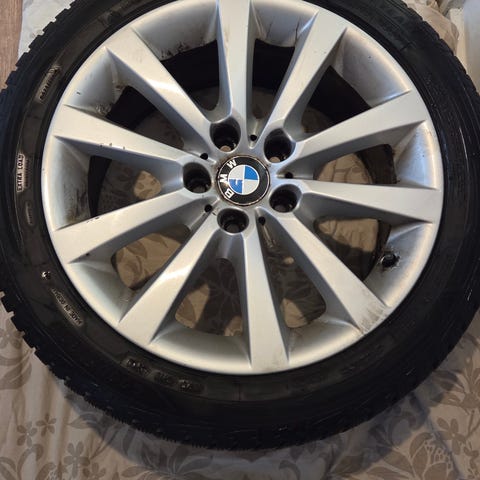2 gode dæk og de andre 2 kan køre denne vinter. Passer til bmw F45. Et 52, boltafstand 112mm. 7x16 den ene fælg har lidt kantstens kys.