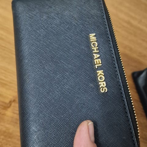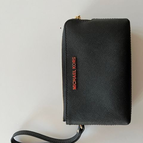 Lille clutch i imiteret slangeskind fra Michael Kors, med lynlås, plads til både kort og lille telefon. Aftagelig hank