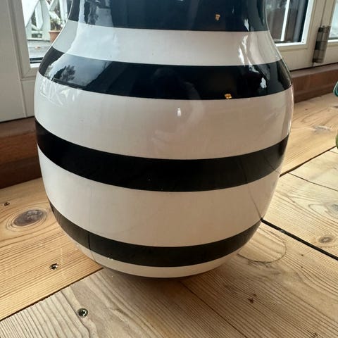 Flot og dekorativ Omaggio-vase med det velkendte grove penselstrøg. Vasens bløde former og brede striber giver vasen en uhøjtidelig udstråling.