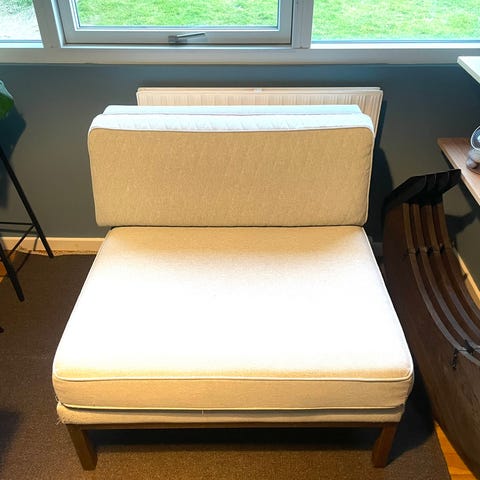 Helt ny liggestol fra Bloomingville , i natur og med sort jernstel og lækker tyk hynde.. den er ideel til havens ude område eller brug den i orangeriet i et hyggehjørne, så du kan nyde tiden med en go bog. Vejl udsalg 2995,- . Min pris 1200,-