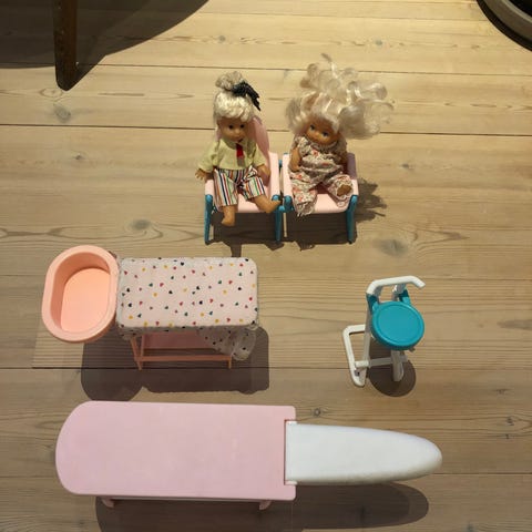 2 heste - 2 cykler - badeting - ski - tennisketcher - tøjstativ - seng - barnevognstop - 2 små dukker