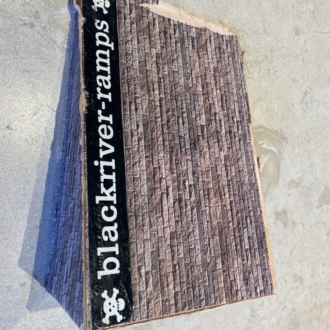 Mini skateboard rampe og forhindringer legetøj i plastik med blå, gule og sorte detaljer. Sættet inkluderer en rampe med håndtag og en mindre forhindring, egnet til brug med fingerboards eller små skateboards.