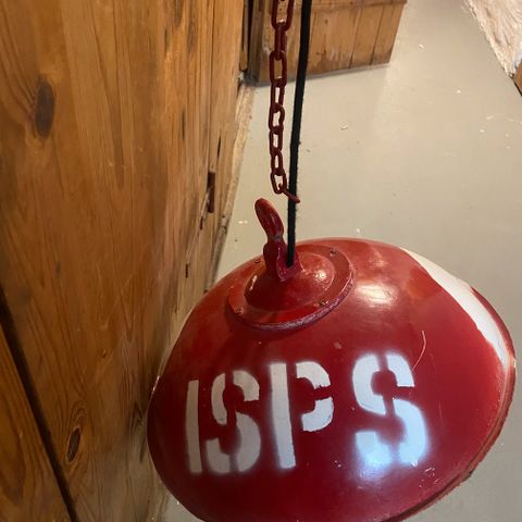 Jeg har tidligere købt den af en som laver dem i dette industrielle look. Den er turkis/grå på ydersiden og kobberfarvet på indersiden. Vær opmærksom på at lampen er malet, den er ikke af kobber.