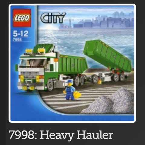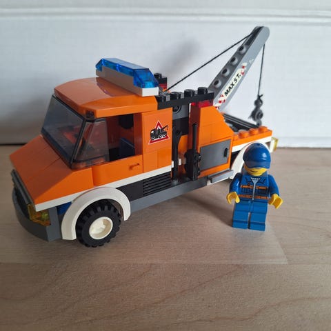 LEGO City 7638 Vejservice Vogn i orange og hvid med kran og tilbehør.