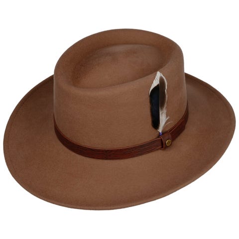 Flot hat af mærket Stetson. Den er i ægte uld filt, vand-og snavs afvisende, foldbar og varm.