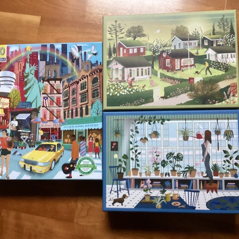 Det andet har 1500 brikker. Kassen er som ny - ligesom brikkerne. Færdigt mål 68x47cm. Brikkerne er lidt mindre end det lille puslespil.