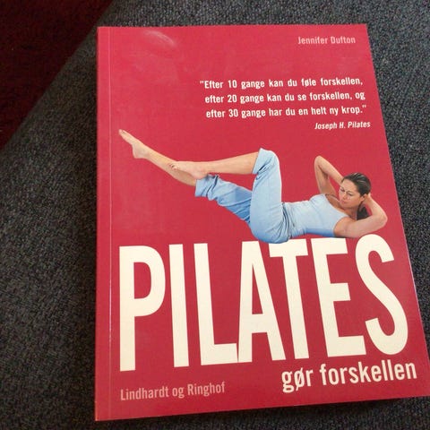 Pilates bog med instruktioner og øvelser til Pilates træning. Indeholder detaljerede beskrivelser og billeder af øvelser, der fokuserer på kropsholdning, bevægelse og sundhed. Velegnet til personer, der ønsker at lære eller forbedre Pilates praksis.
