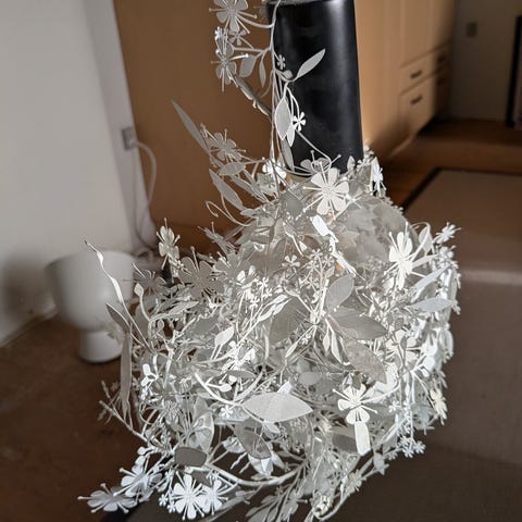 Skulpturel lampeskærm bestående af en overflod af papirklip designet af den Hollandske designer Tord Boontje (nu design studio i London).