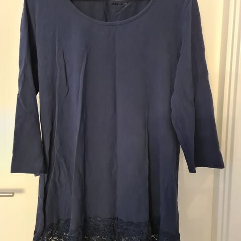 bluse lige til at skylle op i en mørk mellem blå med flot detaljer øverst, se fotos