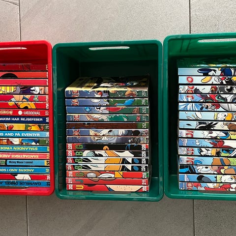 Bøgerne indeholder klassiske historier med karakterer som Anders And og andre Disney-figurer.